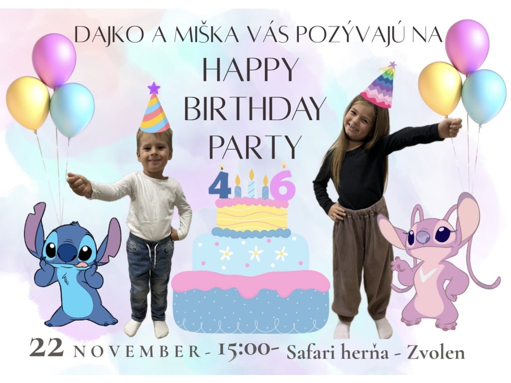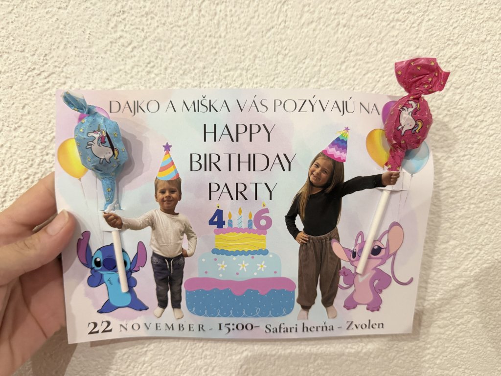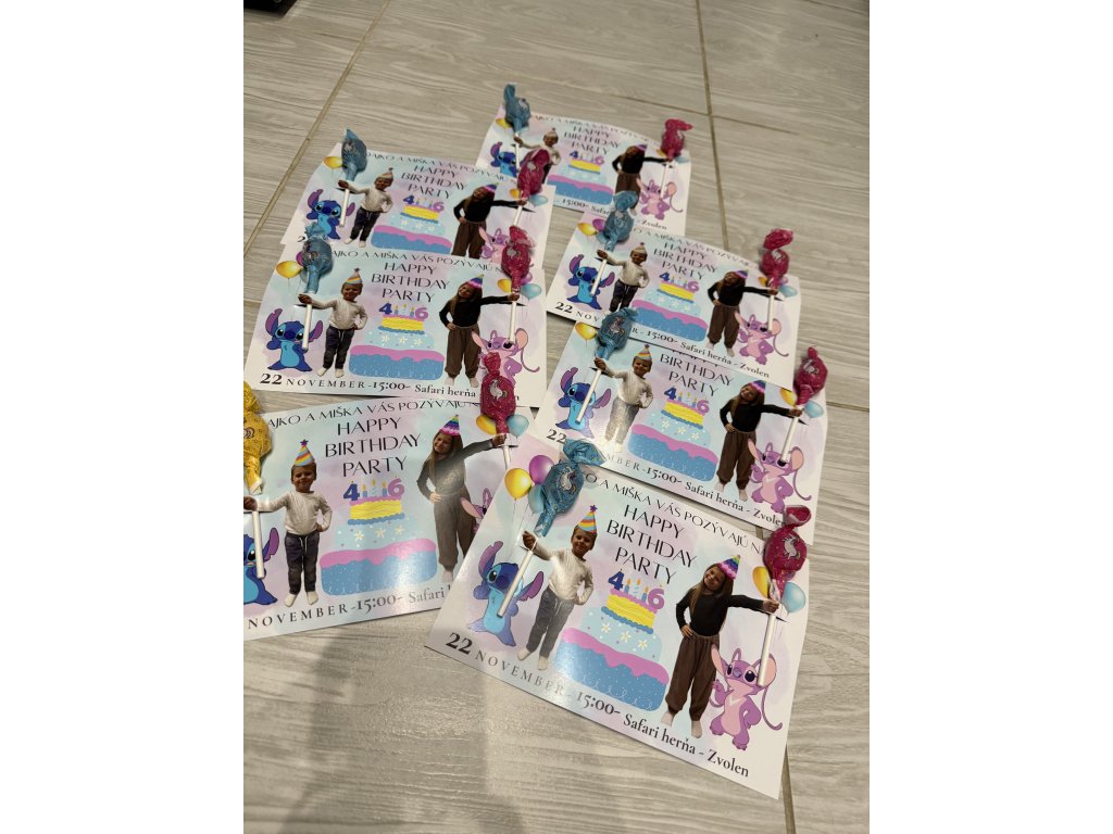 Vytvoríme vám originálnu, hravú a veselú pozvánku s fotkami vašich detí, obľúbenými postavičkami, balónmi, tortou – presne podľa vašich predstáv.
